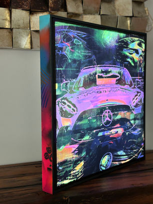 Ich liebe Autos, wegen ihrer Form, dieser Strahlkraft, Stärke und Eleganz. Ich höre den Motor und fühle die PS im Design und das bewirkt in mir dieses MUSS, daraus meine Kunst zu erarbeiten. Auch hier gibt es die Möglichkeit diverse Medien und Größen zu wählen. I love cars for their shape, their power, strength and elegance. I hear the engine and feel zje horsepower in the design and it inspires me to create my art from it. Here too, there is the option to choose from various media sizes.